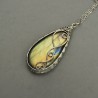 Wisiorek z mojej najnowszej kolekcji z kryształem szklanym 22mm w kolorze Bermuda Blue. Wykonany w pojedynczym egzemplarzu pracochłonną techniką wire wrapping. W całości ze stali chirurgicznej. Całkowita długość wisiorka to około 3,2cm. Zawieszony został na łańcuszku o długości ok.50cm.