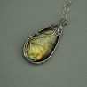 Elegancka, ręcznie robiona bransoletka z pięknie mieniącymi się na kolorowo labradorytami. Wykonana ręcznie techniką wire wrapping. Wzory z drutów są niepowtarzalne co czyni bransoletkę unikatową. Długość bransoletki regulowana 18-22 cm. Elementy ozdobne mają wymiary około 2,5x1,1cm.Labradoryt wzmacnia wiarę w siebie, jest doskonałym amuletem ochronnym....