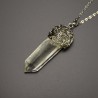 Wisiorek z kolekcji Talizmany z soplem naturalnego kryształu górskiego. Kryształ górski to uniwersalny kryształ mocy. Ma wszechstronne zastosowanie. Odbija negatywną energię, wzmacnia działanie innych kamieni. Więcej o jego magii tutaj. Wisiorek wykonałam techniką wire wrapping z drutów ze stali chirurgicznej. Całkowita długość wisiorka (z kółeczkiem) 5...
