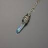 Unikatowy wisiorek z kolekcji Talizmany z anielską aurą - kryształem górskim z naturalnym szpicem, pokrytym warstwą platyny i srebra, pięknie połyskującym na tęczowo. Wisiorek zrobiony został ręcznie techniką wire wrapping z drutów ze stali chirurgicznej. Całkowita długość wisiorka 3,4 cm. Zawieszony został na regulowanym łańcuszku ze stali chirurgicznej...